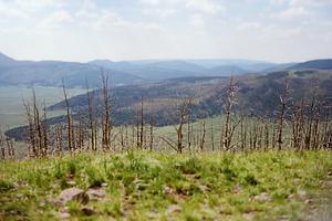 View from Cerro Grande looking West towards the Valles Caldera 6x9 Fuji Reala 100 in Graflex Century Graphic, tilt shift for fun